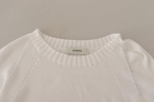 Alpha Studio Weißer Pullover mit langen Ärmeln und Rundhalsausschnitt