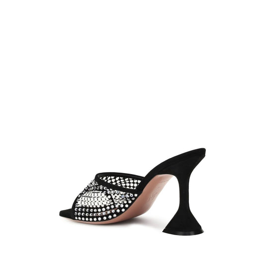 Amina Muaddi Schwarz Kristalle Stiletto Heels Sandalen