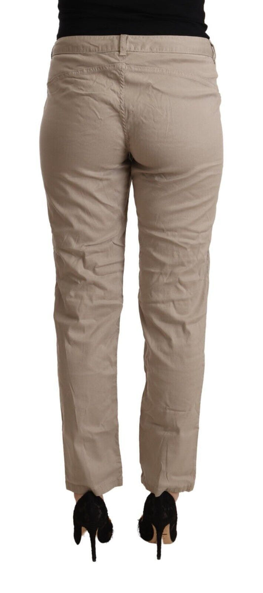 Acht Beige Denim Cotton Bottom Slim Fit Folded Pant