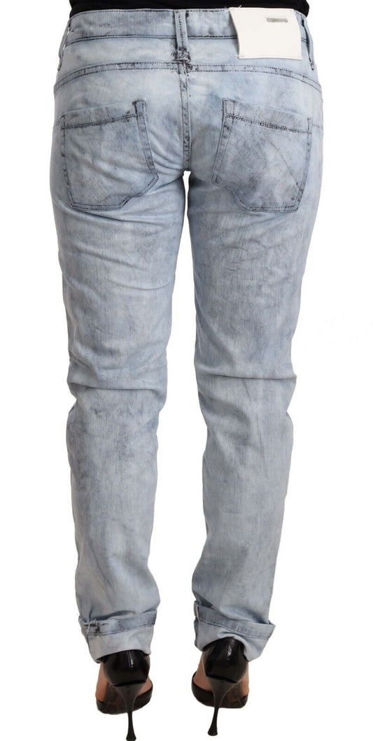 Acht Hellblaue Skinny Denim-Jeans aus gewaschener Baumwolle mit niedriger Taille