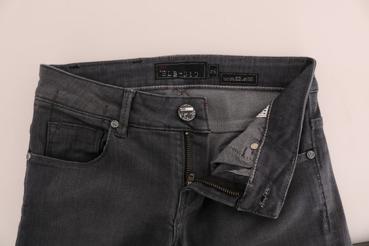 Acht Graue Skinny Denim-Hosenjeans mit niedriger Taille