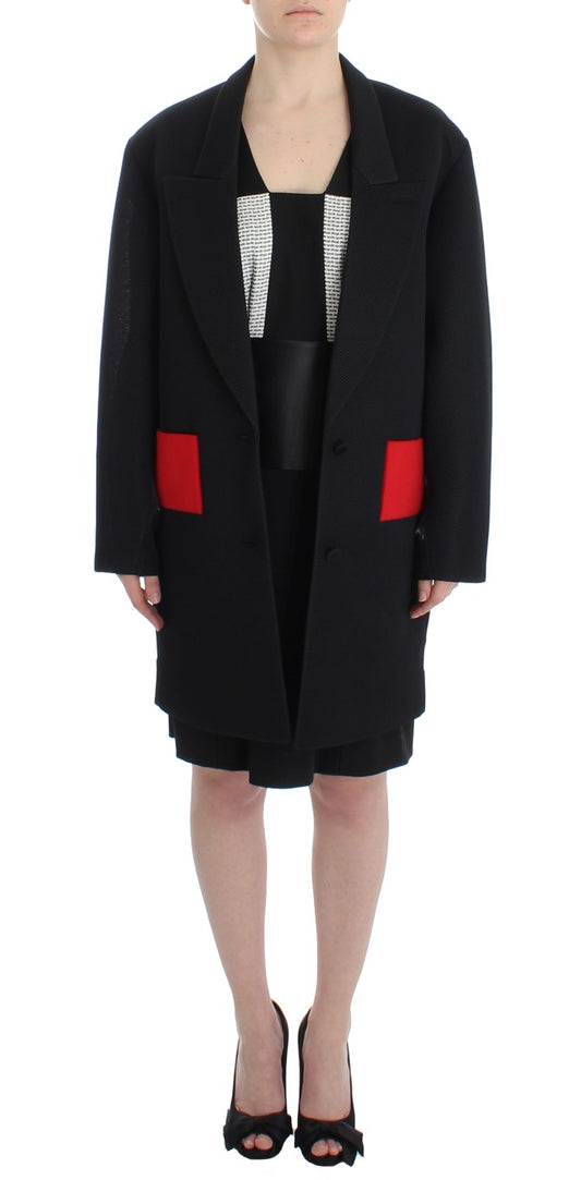 KAALE SUKTAE Schwarzer Mantel Trench Long Draped Jacket Blazer