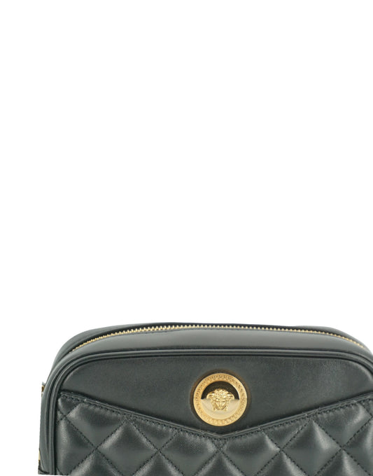 Versace Elegante kleine schwarze Leder-Crossbody-Tasche