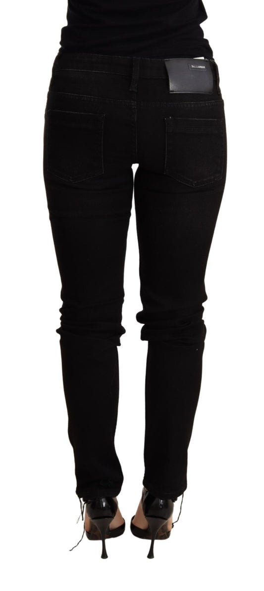 Acht Schwarze Skinny-Denim-Hose mit niedriger Taille