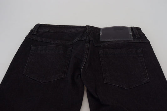 Acht Schwarze Slim Fit Denim-Hosenjeans aus gewaschener Baumwolle mit niedriger Taille