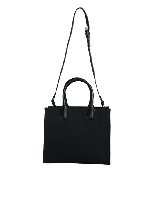 Versace Schwarze Top Handle Canvas Leder Logo Crossbody Tote Bag