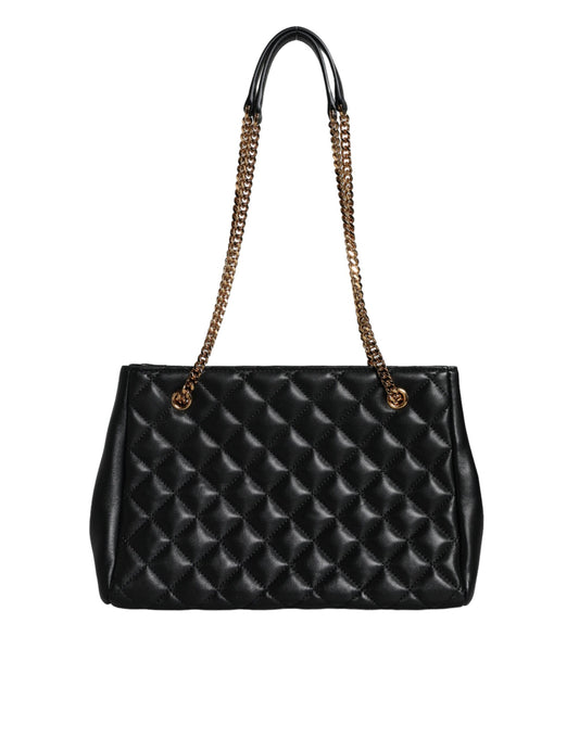 Versace Schwarze gesteppte Nappaleder-Schultertasche mit Kettenriemen