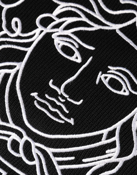 Versace Schwarzer Pullover mit Medusa-Stickerei und Rundhalsausschnitt