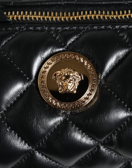 Versace Schwarze gesteppte Nappaleder Crossbody Umhängetasche