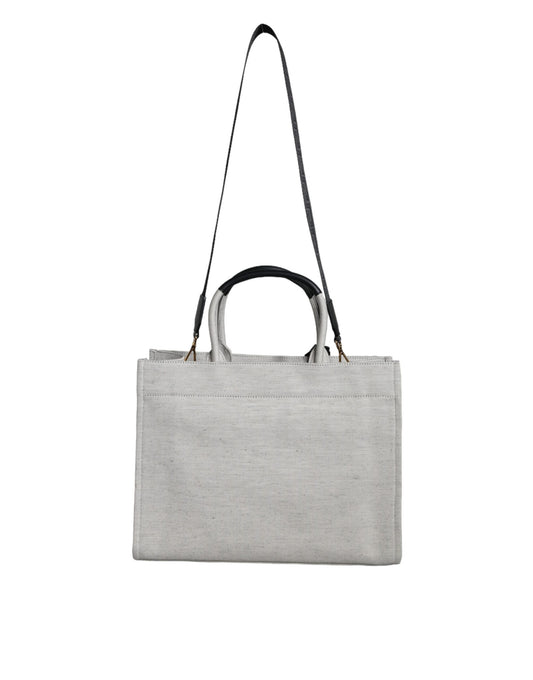 Versace Weiße Top Handle Canvas Leder Logo Crossbody Tote Bag