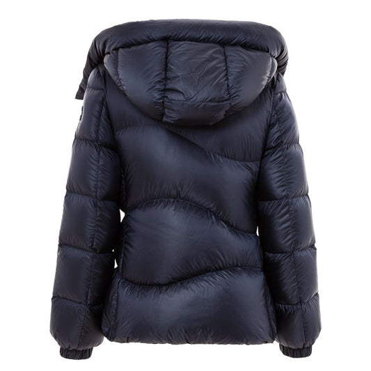 Add Elegante blaue Daunen-Pufferjacke mit Kapuze