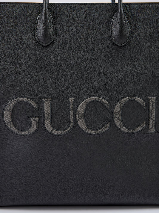Gucci Schwarzes Leder Logo Medium Tote Bag