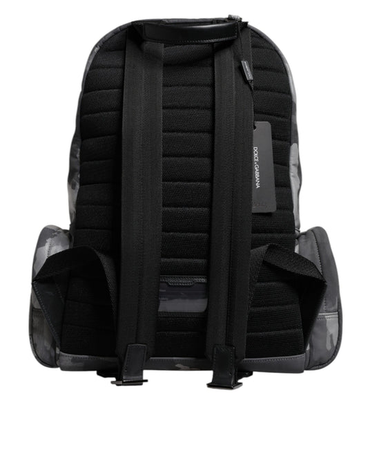 Dolce & Gabbana Graue Baumwolle Camouflage Logo Plaque Rucksack Tasche