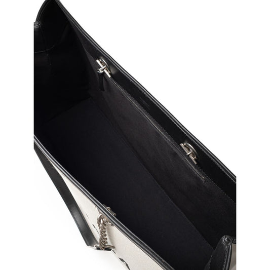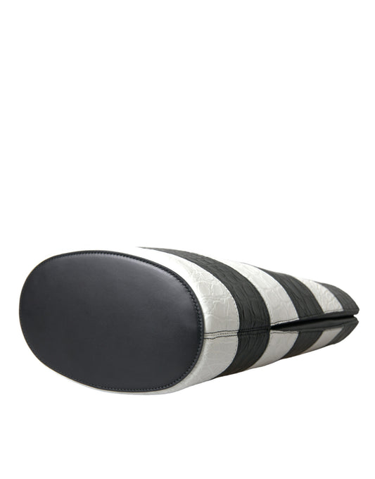 Balenciaga Schwarz-weiß gestreifte Exotenhaut Leder Maxi Bucket Tote Bag