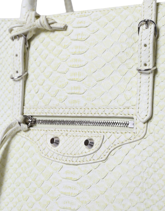 Balenciaga Weiß Gelb Exotische Haut Leder Einkaufstasche PAPIER Tasche