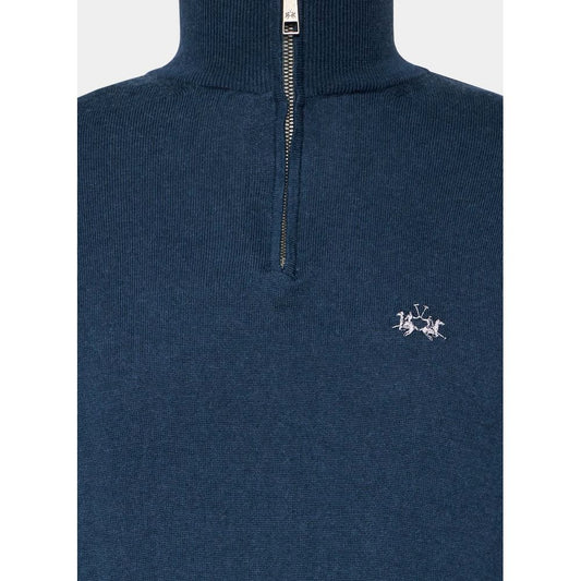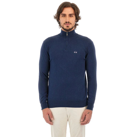 La Martina Blauer Wollpullover für Männer mit halbem Reißverschluss