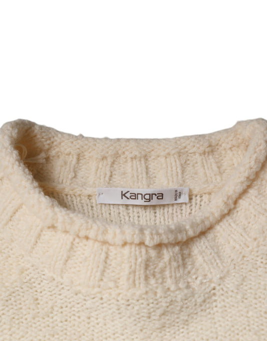 KANGRA Beige Wool Knit Long Sleeve Round Neck Pullover Sweater