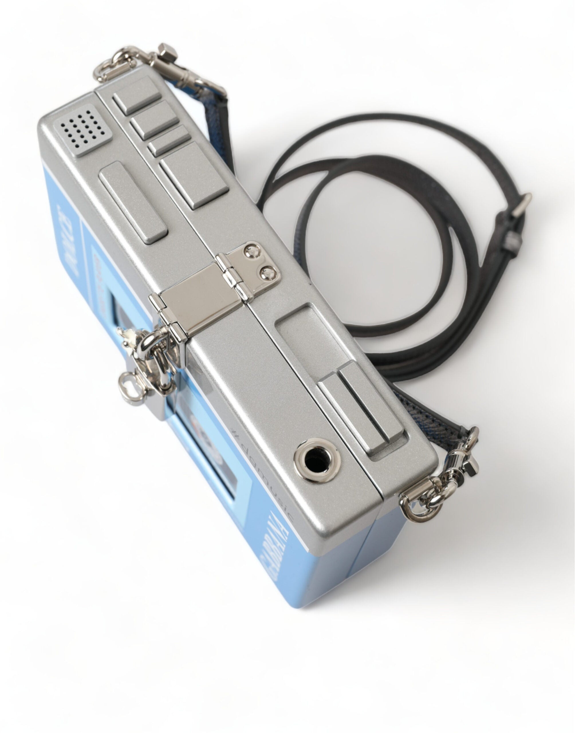 Dolce & Gabbana Blau Silber Holz Walkman Box Clutch Schulter Tasche Borse