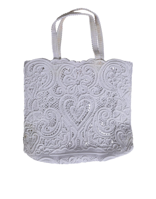 Dolce & Gabbana Weiß Cordonetto Spitze Beatrice Tote Einkaufstasche