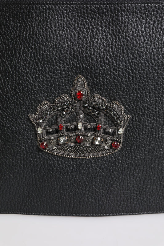 Dolce & Gabbana Schwarzes Kalbsleder Krone verschönert Clutch Pouch Tasche